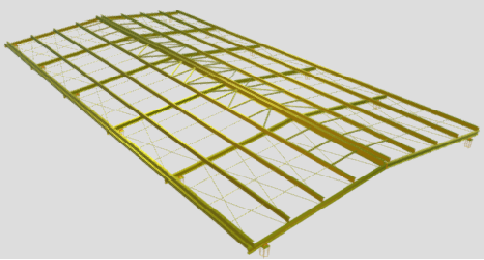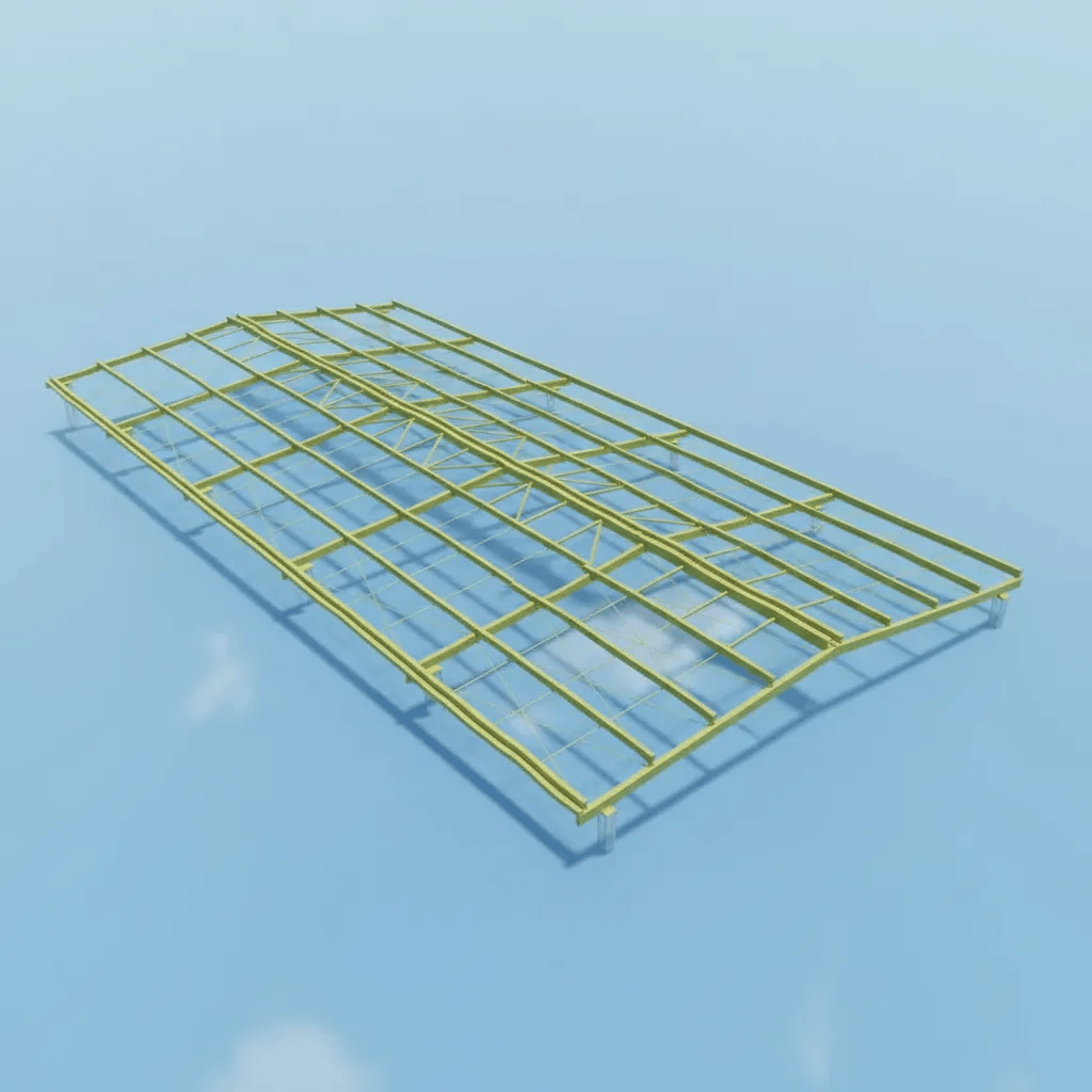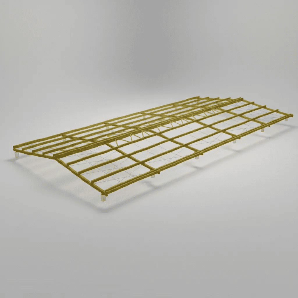 Cobertura em alma cheia metálica, projetada para ser apoiada sobre estrutura já existente