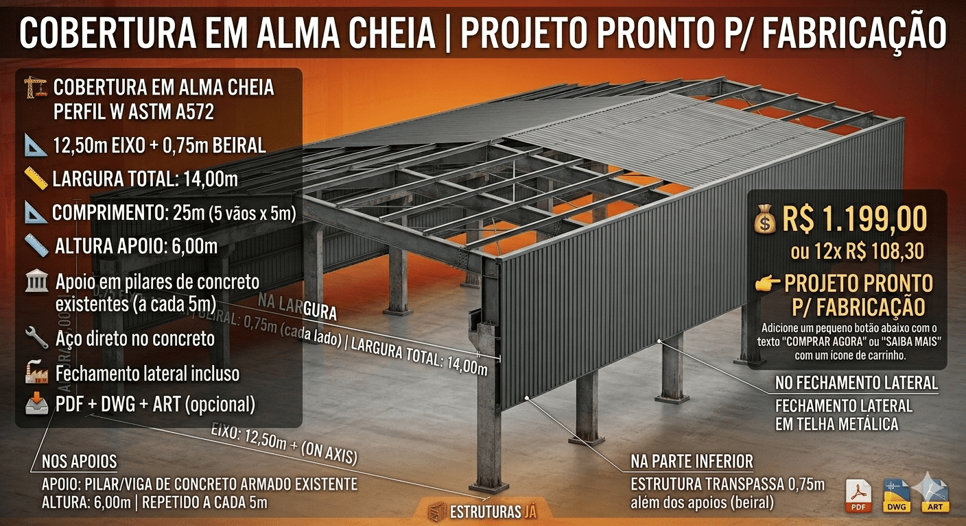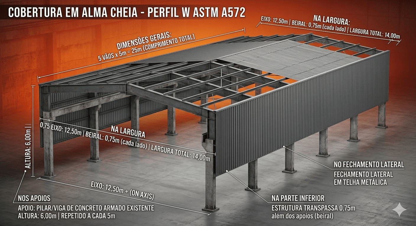 🏗️ Projeto Estrutural – Cobertura em Alma Cheia sobre Estrutura Existente