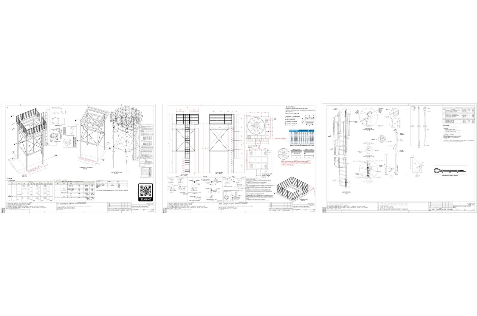 Arquivo PDF: Documento final para visualização, impressão e aprovação, incluindo memorial de cálculo, detalhes de solda e especificações.