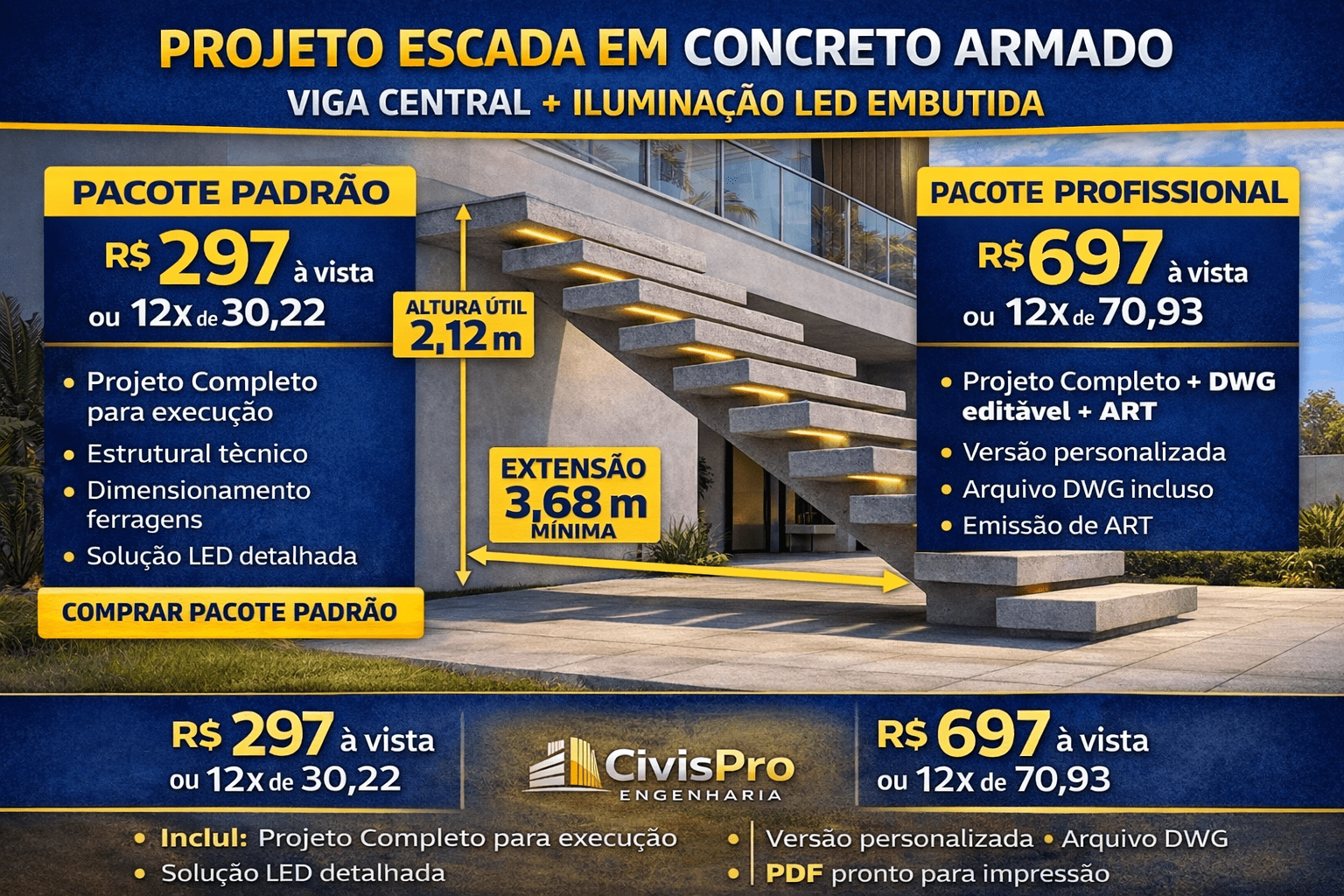 É projeto estrutural detalhado pronto para execução e adaptação técnica.
